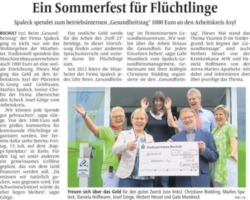 Volles Programm beim 5. SPALECK Mitarbeiter-Gesundheitstag Spende für Bocholter Flüchtlings-Familienfest / Defibrillatoren fürs Team Rund [...]